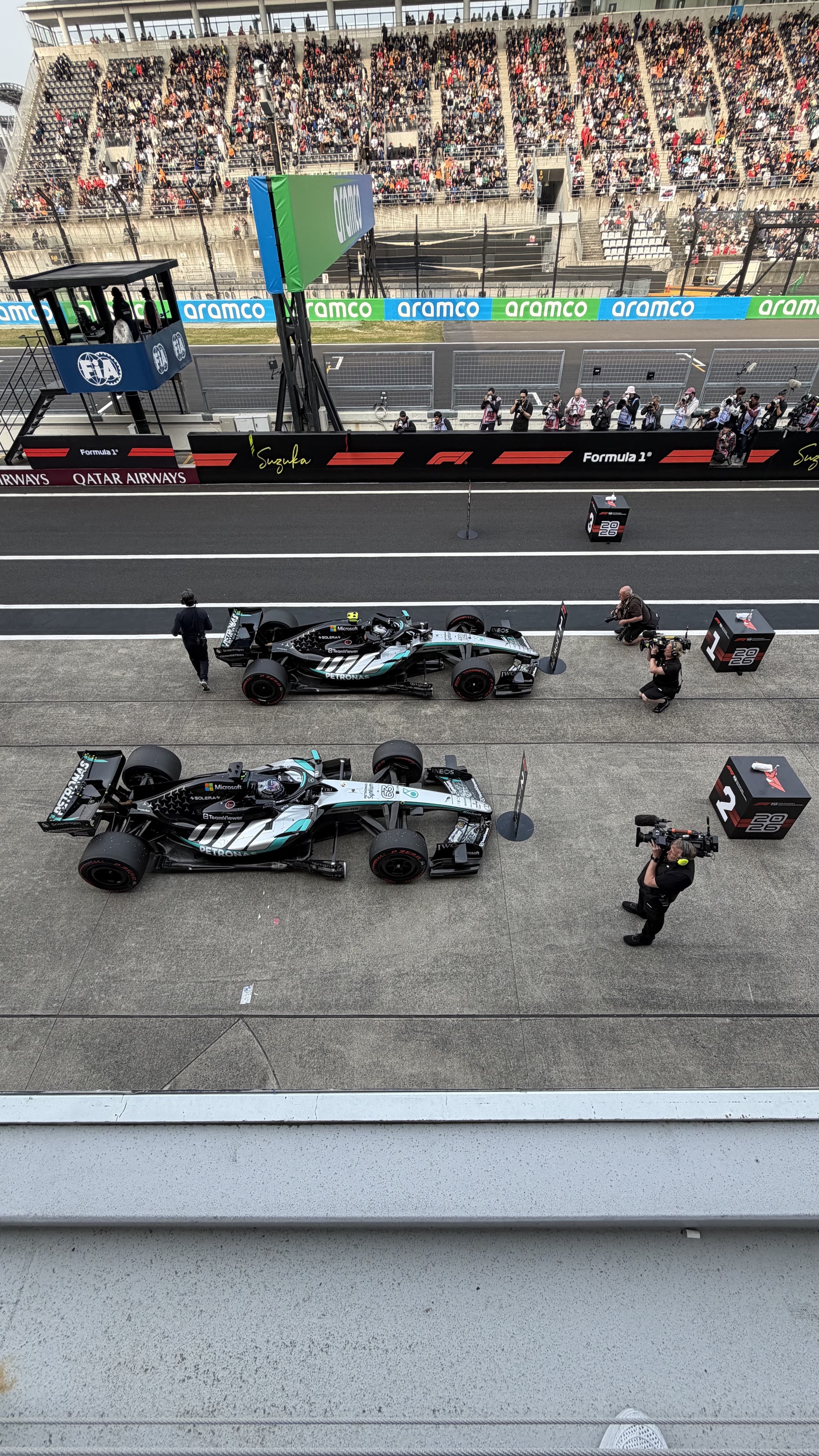 When the young Italian arrived at victory lane, he promptly hopped out of his Mercedes and celebrated with his new signature move, though it isn’t really his. It belongs to Usain Bolt, whom Antonelli had told the media in days prior that he truly admired. I had a front-row seat to this and to his podium celebration, as you can see in these photos. It was such an emotional moment to witness a young kid push away all the noise and deliver back-to-back wins.