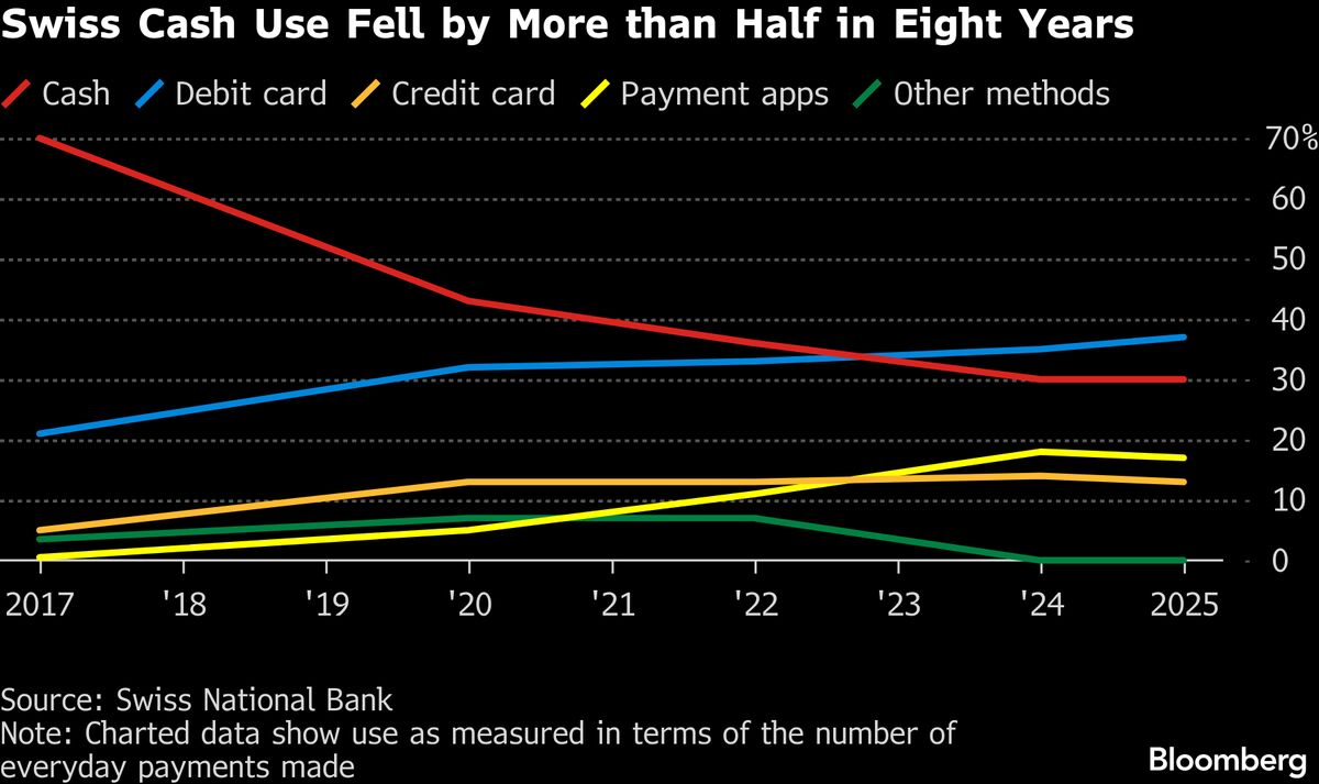 HomeBusinessGlobal EconomySwiss Find They Can’t Pay With Cash as Much as They Used toSwiss Find They Can’t Pay With Cash as Much as They Used to March 30, 2026nileshsha@hotmail.com People in Switzerland are encountering increasing frustration that they can’t withdraw and use cash as much as they used to. www.bloomberg.com #Swiss #Find #Pay #CashRelated reading:Portugal Is Well-Positioned to Bear Impact of War, Finance Minister SaysBlackRock's Li Says War Catapults Thematic Equity ApproachRed Sea Transit Is Becoming a Concern as War WidensShare: X · Facebook · LinkedIn