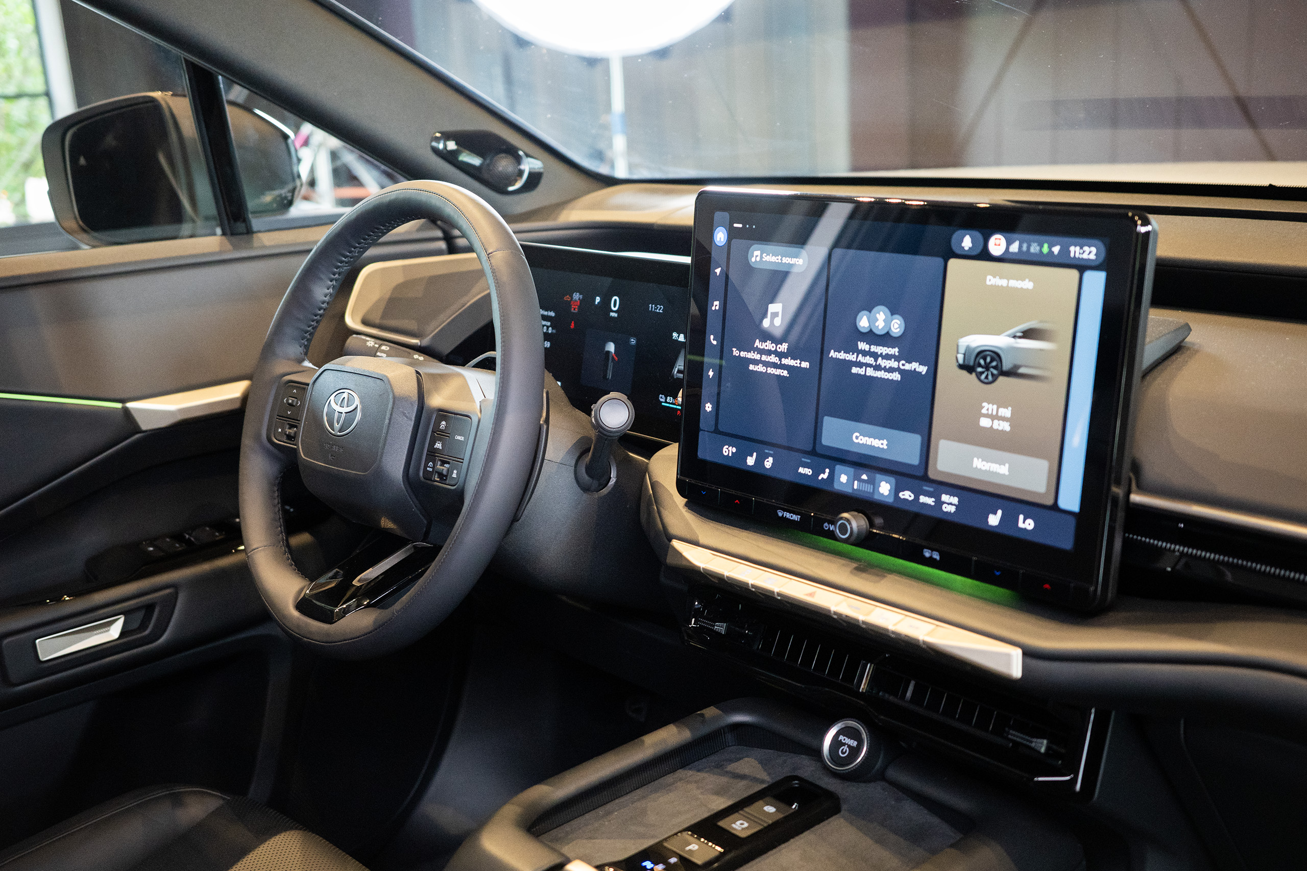 There are two of those available. The standard XLE battery has a capacity of 77 kilowatt-hours and a Toyota-estimated range of 287 miles (expect EPA to be close to that, if not identical). Upgrade to AWD and the capacity remains the same, but you lose 17 miles of total range. Both the XLE AWD and the Limited (also AWD) can be optioned with a 95.8-kWh pack with a 320-mile range.